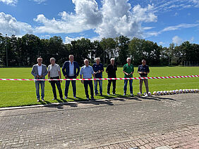 Verwaltungsvorstand Elmar Bellemann, Sportvorstand Achim Jung und Finanzvorstand Hermann Lang freuten sich, den sanierten Rasenplatz im Beisein zahlreicher Gäste einweihen zu können.