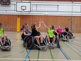 Unter Anleitung von Heiko Striehl, Projektleiter „Rollstuhl Rugby macht Schule“ im Sportkreis Heidelberg, machen die Schülerinnen und Schüler in der Sporthalle ihre ersten Erfahrungen im Umgang mit einem Rugby-Rollstuhl und erfahren alles Wissenswerte über diese Sportart. Nach Übungen und kleinen Spielformen mit dem Rollstuhl, wird das Erlernte zum Abschluss in einem Rollstuhlrugbyspiel in die Praxis umgesetzt.