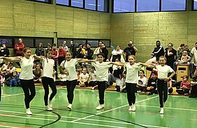 Präsentierte wurden Sportarten wie Fußball, Badminton, Turnen, Rugby, Gardetanz und Le Parkour. Vor allem die Parkour-Sportler sprangen in Flick-Flack-Manier über allerlei Hindernisse die in der Halle verteilt waren. Weitere Mitmachstationen waren Tischtennis, Klettern an einer Kletterwand, Bogenschießen, Kin-Ball (ein Ball mit 1,40 m Durchmesser muss in der Luft gehalten werden) sowie verschiedene Wurf- und Ballspiele. Nebenbei schwebte das Schwungtuch durch die Halle, wobei sich zeigte, wer von den ganz Kleinen Kraft und Mut hatte, um sich beispielsweise auf das Tuch zu legen oder unter ihm durchzukriechen.