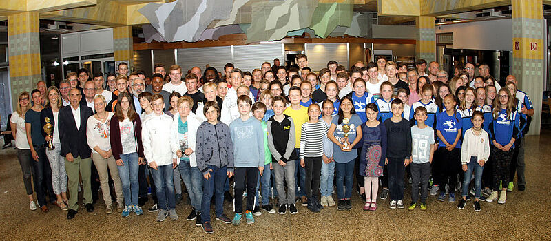 Die Deutschen Jugendmeisterinnen und Jugendmeister, die Siegerin und der Sieger des Landesfinales bei „Jugend trainiert für Olympia“ und teilnehmende Mannschaften, die sich für den Endkampf in Berlin qualifiziert haben, nehmen an der Jugend-Sportlerehrung teil.